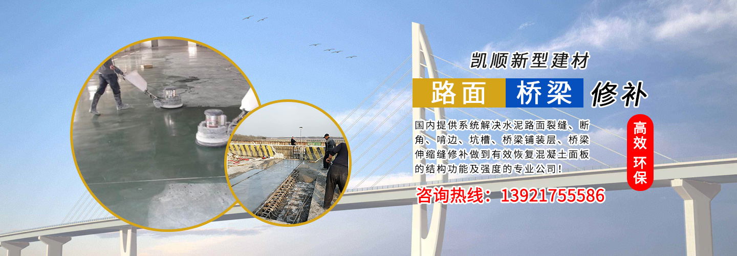 江蘇凱順新型建材有限公司是國內提供系統解決水泥路面裂縫、斷角、啃邊、坑槽、橋梁鋪裝層、橋梁伸縮縫修補做到有效恢復混凝土面板的結構功能及強度的專業(yè)公司!為市政工程、高速、國道、省道、縣鄉道路的改造及大修、中修等大型工程提供了快速、高效、環(huán)保、經濟系統方案和技術支持!